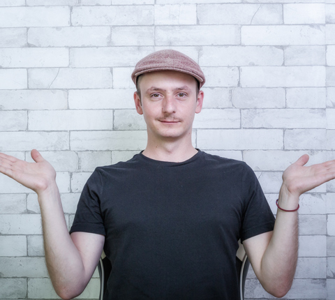 Seine Comedy beleuchtet charmant Geschichte und die Geschichten dahinter, kulturelle Widersprüche und Absurditäten des Alltags.
