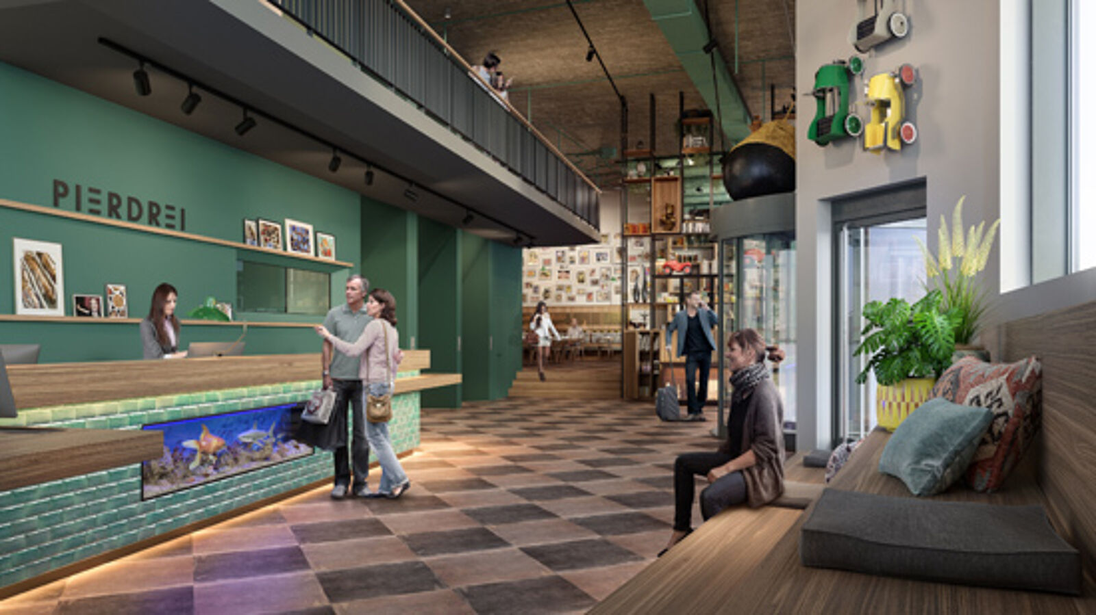 Das große Gebäude hat 212 inspirierende Fremden- und Bekannten-Zimmer und unterscheidet sich längst auf den ersten Blick von allen Hotels der Erde. Was nennt sich hier Hotel? Ein lebendes Objekt ist das. Ein Ort, der Familien mit Kindern gleichermaßen wie Geschäftsreisende mit offenen Armen empfängt und nicht mehr loslässt. So fühlt man sofort den Puls. Einfach durch die Tür, zügig, rein ins pulsierende Leben und sich auf Händen durchs Gebäude tragen lassen. Auf dem Dachgarten beispielsweise, dem MOON 46, kann man herrlich mental Blumen pflücken und hat einen tollen Blick auf die HafenCity genießen. Im ersten Stock übernachtet man im Wohnwagen in der CAMPER CITY, wenn der Abenteurer in einem ruft. Aber erst, wenn man seine Kinder im RACKER ROOM abgegeben und auf der HAFENBÜHNE aus seinen Memoiren gelesen hat oder verschiedenen Künstlern zuschaut. Im Restaurant KITCHENS kann man sich natürlich auch einfach durch die Küchen unserer Welt futtern, leiht sich beim DREICYCLE ein Lastenfahrrad, kauft im hauseigenen Shop PIERTHINGS Souvenirs für Daheimgebliebene oder schaut im ASTORkino nebenan einen Blockbuster nach dem anderen. Man muss aber nicht alles mitmachen, sondern kann auch einfach Entspannen und die Ruhe genießen.